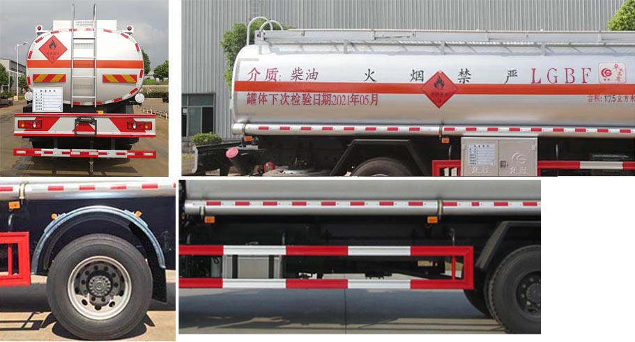 | 配置 | 1、該車適用于危險品運輸,運送危險貨物車輛類型為:FL型,類項號:3。罐體有效容積:12.7立方米,運輸介質(zhì):柴油、煤油、汽油,密度:830、800、700千克/立方米,罐體外形尺寸(長×寬×高)(mm):5700×2000×1400。罐體上部選裝上走道;選裝后部尾燈架樣式;選裝弧形擋泥板;選裝左側(cè)無工具箱。2、側(cè),后防護材料均為Q235,螺栓連接;后防護截面尺寸120×60mm,下邊緣離地高500mm。3、僅采用軸距(mm):4700。后軸采用空氣懸架。隨底盤選裝駕駛室前面罩,選裝側(cè)窗玻璃;駕駛室頂部中間三個裝飾燈為選裝件;前霧燈為選裝件;駕駛室前臉擾流罩為選裝件。僅選用排氣管前置、限速裝置(限速80km/h)、前輪盤式制動及子午線輪胎的底盤;安裝帶有衛(wèi)星定位功能的行駛記錄儀;ABS型號/生產(chǎn)廠家:3631010-C2000/東科克諾爾商用車制動系統(tǒng)(十堰)有限公司。發(fā)動機B6.2NS6B210油耗值為26.5 L/100Km。 該車后軸為采用空氣懸架. | ||
