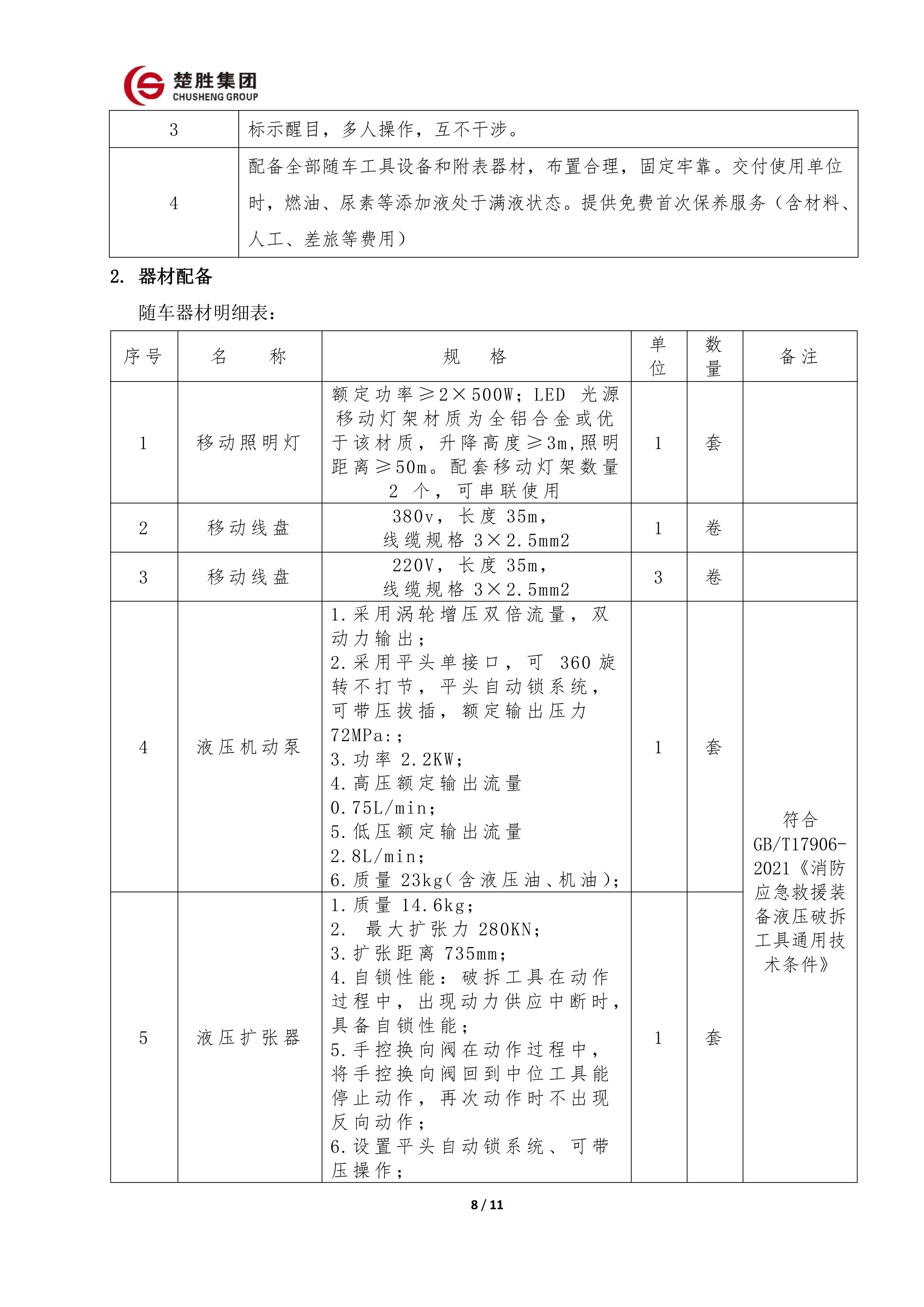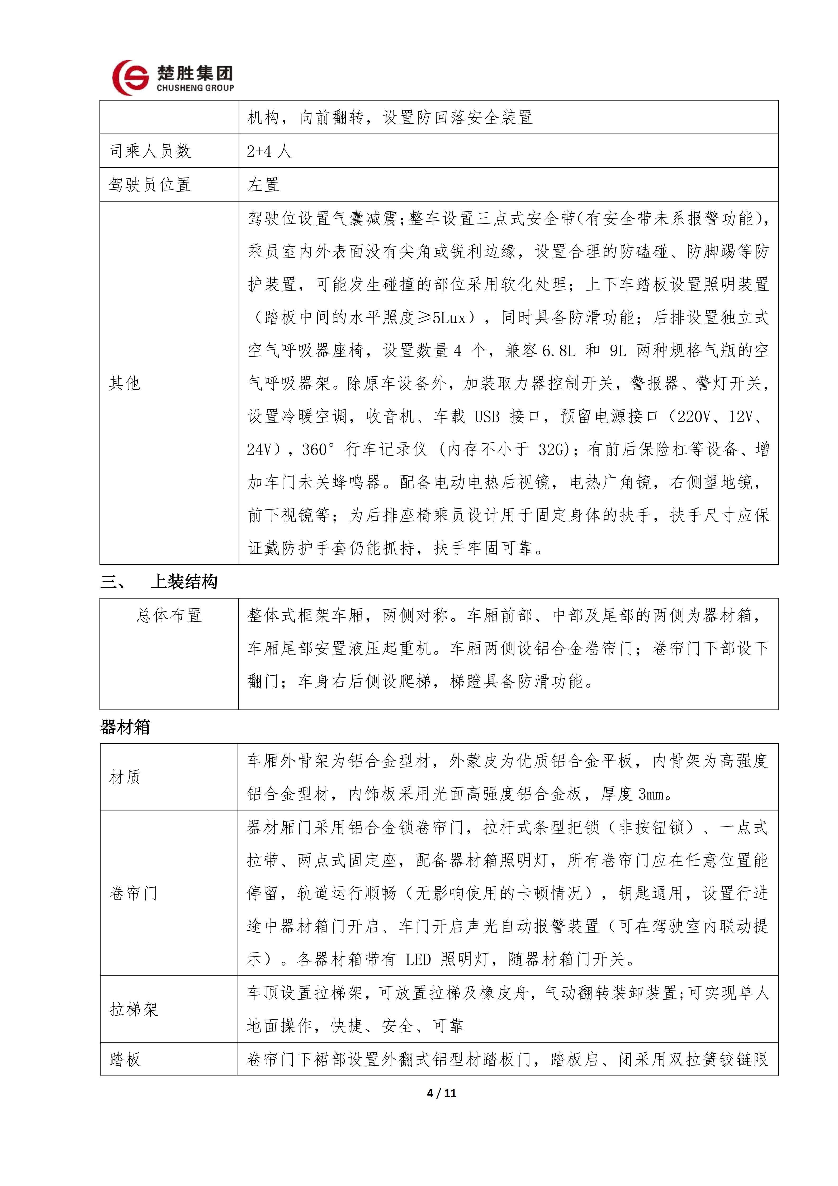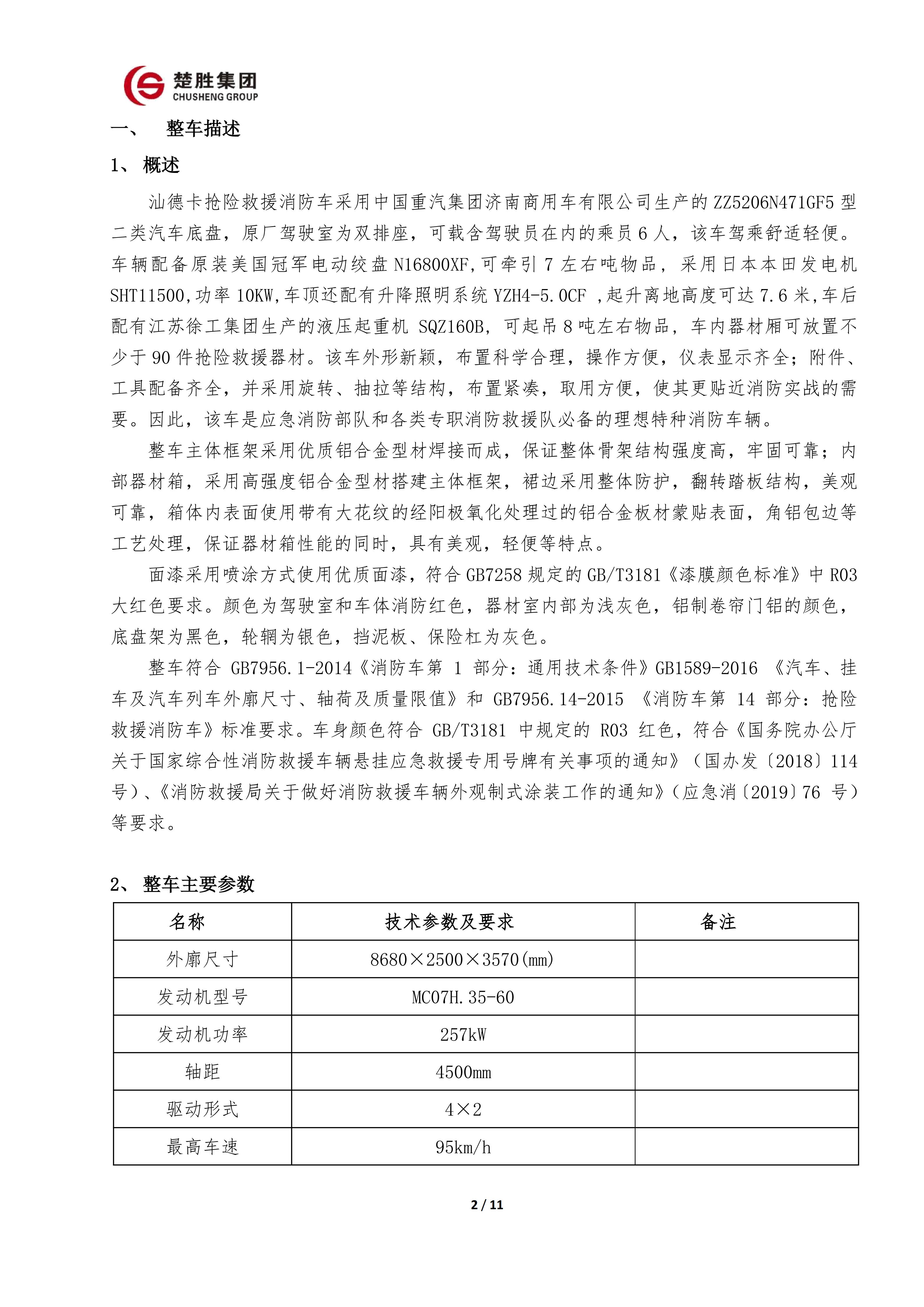楚勝 CSC5140TXFJY90/S6型搶險(xiǎn)救援消防車