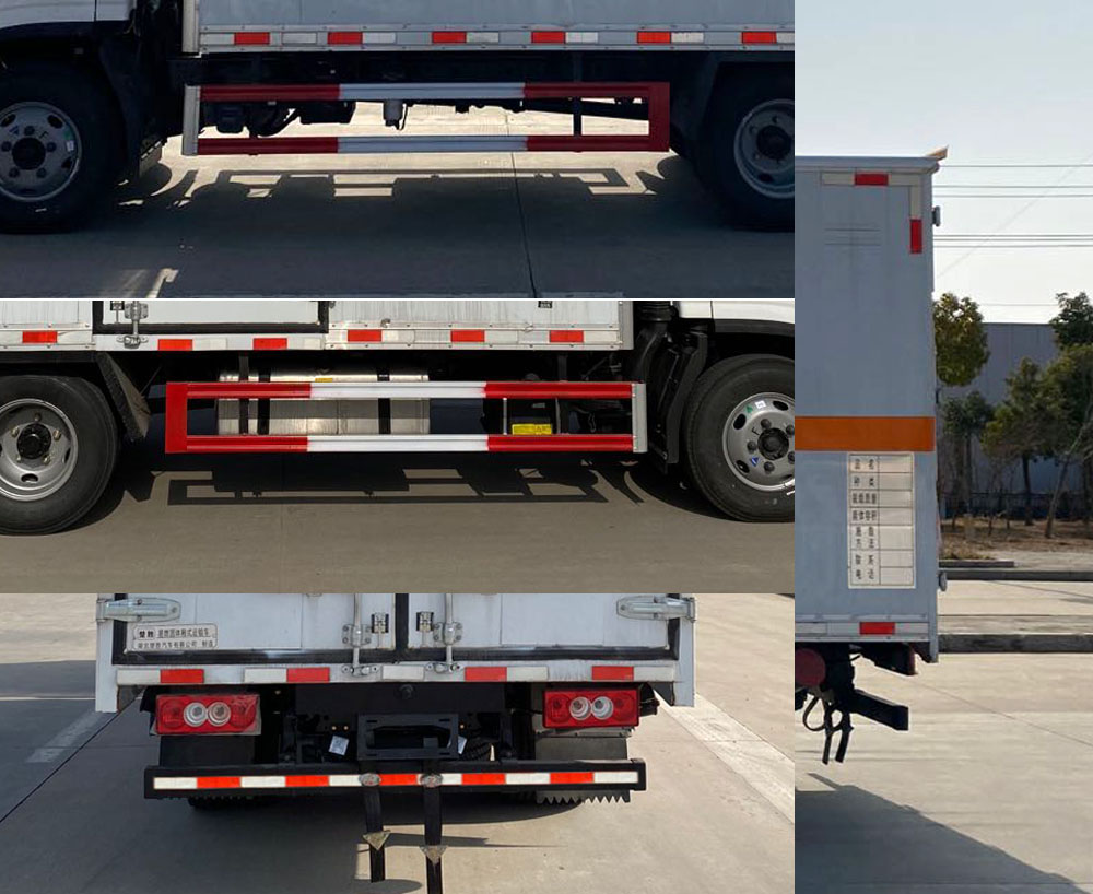 | 配置 | 該車(chē)為危險(xiǎn)品運(yùn)輸車(chē),運(yùn)輸具有**容器(瓶)包裝的物品,運(yùn)送危險(xiǎn)物品類項(xiàng)號(hào):4.1,4.2,4.3。廂體頂部封閉,不可開(kāi)啟。側(cè)后防護(hù)材料均為Q235,螺栓連接,后防護(hù)截面尺寸(mm)100×50,下邊緣離地高450mm。選裝后部尾板,選裝后部尾板時(shí)后防護(hù)材料為Q235,螺栓連接,截面尺寸(mm)φ100,下邊緣離地高450mm。廂體選裝側(cè)開(kāi)門(mén)及位置或無(wú)側(cè)門(mén)、選裝后門(mén)雙拉桿,廂體選裝瓦楞板結(jié)構(gòu),選裝百葉窗。僅選用排氣管前置、限速裝置(限速80km/h)、前輪盤(pán)式制動(dòng)及子午線輪胎的底盤(pán);轉(zhuǎn)向輪裝備輪胎爆胎應(yīng)急防護(hù)裝置。安裝帶有衛(wèi)星定位功能的行駛記錄儀。ABS型號(hào)/生產(chǎn)廠家:ABS-E/威伯科汽車(chē)**系統(tǒng)(**)有限公司,ABS-VI·E/廣州瑞立科密汽車(chē)電子股份有限公司,YF8/武漢元豐汽車(chē)電控系統(tǒng)有限公司。發(fā)動(dòng)機(jī)/油耗值(L/100Km)對(duì)應(yīng)關(guān)系為: F2.8NS6B131/11.47,Q28-130E60/11.02。尾板收起狀態(tài)水平長(zhǎng)度為280mm,尾板質(zhì)量為350kg。選裝ETC。 | ||
