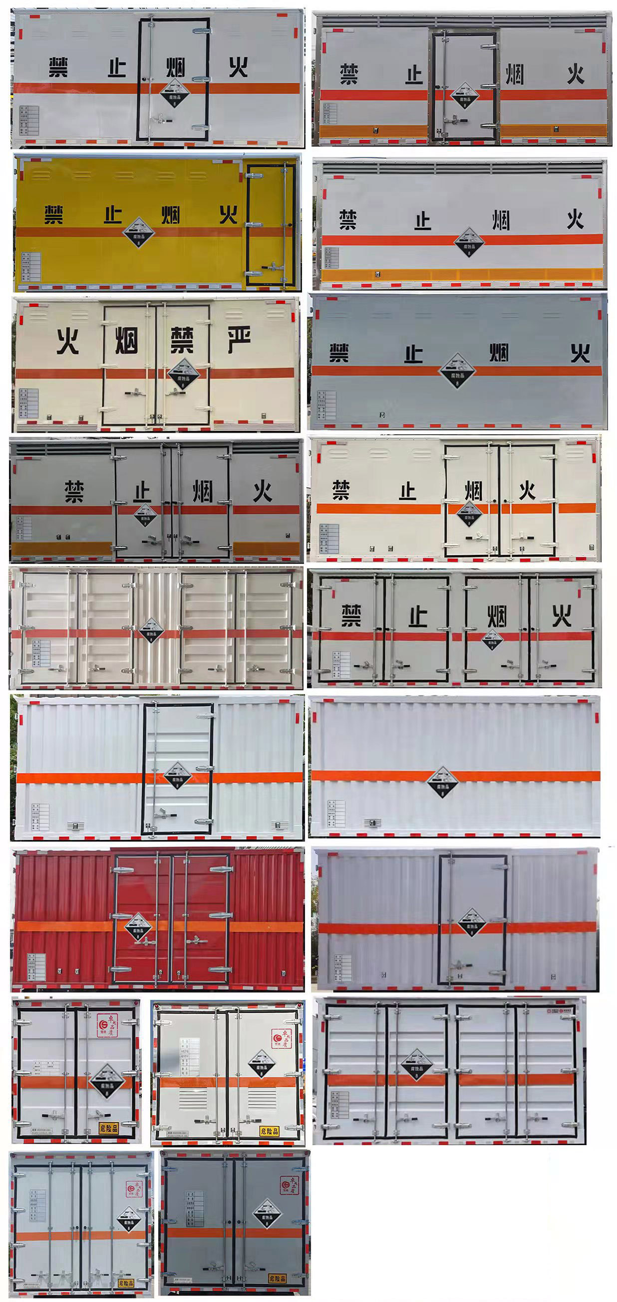 | 其它: | 1、該車適用于運(yùn)輸危險(xiǎn)品。廂體頂部封閉不可開(kāi)啟。運(yùn)輸具有獨(dú)立容器(瓶)包裝的物品,運(yùn)送危險(xiǎn)物品類項(xiàng)號(hào):8。2、側(cè),后防護(hù)材料均為Q235,螺栓連接;后防護(hù)截面尺寸100×50mm,下邊緣離地高410mm。廂體側(cè)面選裝開(kāi)門(mén)型式及位置,選裝不帶側(cè)開(kāi)門(mén),選裝瓦楞板結(jié)構(gòu);選裝百葉窗。3、隨底盤(pán)選裝排半駕駛室,選裝導(dǎo)流罩。僅選用排氣管前置、限速裝置(限速80km/h)、前輪盤(pán)式制動(dòng)及子午線輪胎的底盤(pán);轉(zhuǎn)向輪裝備輪胎爆胎應(yīng)急防護(hù)裝置。安裝帶衛(wèi)星定位功能的行駛記錄儀。ABS系統(tǒng)型號(hào):ABS-VI.E;生產(chǎn)企業(yè):廣州瑞立科密汽車電子股份有限公司.ABS系統(tǒng)型號(hào):ABS-E;生產(chǎn)企業(yè):威伯科汽車控制系統(tǒng)(中國(guó))有限公司.ABS系統(tǒng)型號(hào):ABS8.8 ECU 24V,生產(chǎn)企業(yè):東科克諾爾商用車制動(dòng)系統(tǒng)(十堰)有限公司。發(fā)動(dòng)機(jī)/油耗值(L/100km)對(duì)應(yīng)關(guān)系為:CY4SK261/16.09,D30TCIF1/16.19,F2.8NS6B156/15.39,F3.8NS6B156/14.90。可選裝ETC車載裝置。 | ||