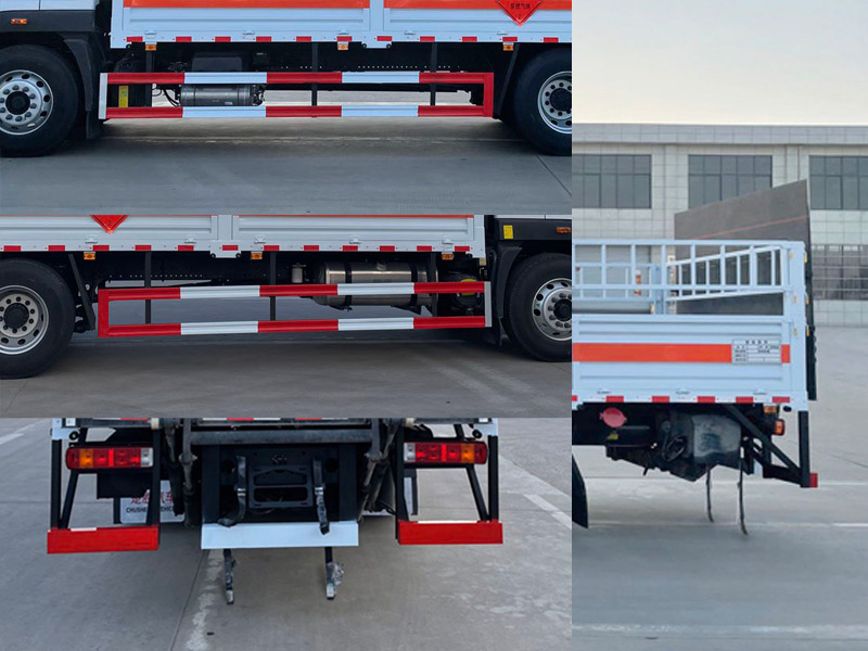 | 其它: | 1、該車適用于運輸危險品。運輸具有獨立容器(瓶)包裝的物品,類項號:2.1,2.2。2、側(cè),后防護材料均為Q235,側(cè)防護螺栓連接;后防護焊接,截面尺寸120×50mm,下邊緣離地高490mm。選裝后部無尾板時,后防護材料為Q235,焊接,截面尺寸120×50mm,下邊緣離地高490mm。選裝欄板樣式。3、僅采用軸距(mm):4700,5150。隨底盤選裝駕駛室,選裝電瓶、尿素罐、儲氣筒、后處理位置。僅選用排氣管前置、限速裝置(限速80km/h)、前輪盤式制動及子午線輪胎的底盤;安裝帶有衛(wèi)星定位功能的行駛記錄儀。該車轉(zhuǎn)向輪安裝輪胎爆胎應(yīng)急防護裝置,后軸采用空氣懸架。選裝ETC。EBS系統(tǒng)型號/生產(chǎn)廠家:EBS 5/克諾爾制動系統(tǒng)(大連)有限公司,CM-EBS/廣州瑞立科密汽車電子股份有限公司。采用的發(fā)動機與油耗值(L/100Km)對應(yīng)關(guān)系為:F4.5NS6B220/24.4,B6.2NS6B210/26。尾板收起狀態(tài)水平長度為290mm,尾板質(zhì)量550kg。 | ||