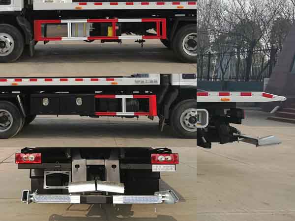 配置  1、該車用于道路車輛清障,主要專用裝置為平板、托臂、絞盤、鋼絲繩、油缸。托舉質(zhì)量:2560kg。僅采用3800mm軸距。2、側(cè)防護(hù)采用冷彎型鋼/Q235,螺栓連接;后防護(hù)由專用裝置代替,下邊緣離地高450mm。選裝后部上尾板,選裝后部結(jié)構(gòu)樣式。3、ABS系統(tǒng)**器型號/生產(chǎn)企業(yè):ABS-E/威伯科汽車**系統(tǒng)(**)有限公司,ABS-VI·E/廣州瑞立科密汽車電子股份有限公司。