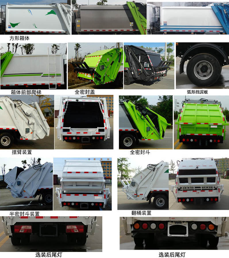 | 配置 | 1、該車主要專用裝置由箱體、壓縮系統(tǒng)組成,用于垃圾的收集與清運(yùn)。該車可選裝方形或弧形箱體,選裝全密封蓋裝置,選裝弧形擋泥板,選裝箱體前部爬梯,選裝后部工作裝置。選裝工作裝置時(shí),外形長(zhǎng)(mm)/后伸(mm)/整備質(zhì)量(kg)對(duì)應(yīng)關(guān)系:①無上料裝置: 6570/-/5830;②擺臂裝置: 6730/160/6100;③全密封斗裝置: 6770/200/6100;④翻桶裝置,半密封斗裝置:6970/400/6100。2、側(cè)防護(hù)采用冷彎型鋼/Q235,螺栓連接;后防護(hù)由專用裝置替代,下邊緣離地高500mm。3、隨底盤選裝黑色輪輞。ABS系統(tǒng)型號(hào): VIE ABS-II,ABS系統(tǒng)生產(chǎn)廠家: 浙江萬安科技股份有限公司。發(fā)動(dòng)機(jī)JX4D306H的油耗值為14.5L/100km。 | ||
