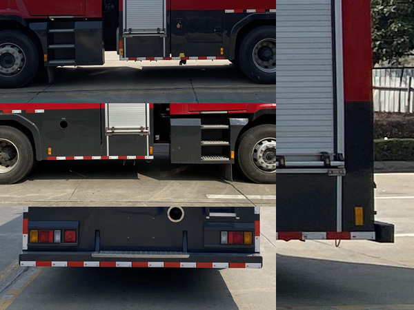 | 其它: | 罐體總?cè)莘e為6.600立方米,水罐尺寸:2390×2400×1200mm。整體式側(cè)防護(hù)結(jié)構(gòu),后防護(hù)裝置材料:Q235A,截面尺寸:100×120mm,與車(chē)輛連接方式:螺栓連接,后防護(hù)離地高度:398mm,ABS生產(chǎn)企業(yè)為浙江亞太機(jī)電股份有限公司,型號(hào)為APG3550500H1。主要專用裝置有消防泵、消防炮。 | ||